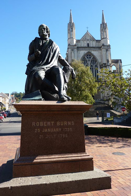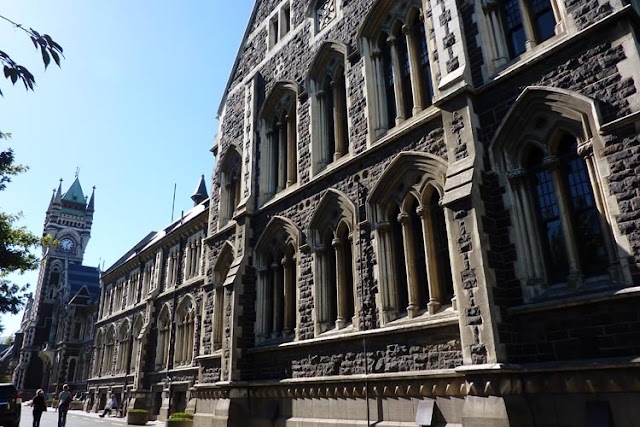 Después de haber varado por lugares inhóspitos y deshabitados le llega el turno de nuevo a la civilización, más concretamente a la capital de Otago, Dunedin. Descendiente de escoceses (Dunedin significa Edimburgo en Gaélico) es una ciudad que conserva la mayoría de sus costumbres y su parentesco a la isla británica se palpa en muchas de sus construcciones, iglesias principalmente. El epicentro de la ciudad lo podemos encontrar en el Octagon, una plaza que ya en el año 1846 cumplía ese papel. Alrededor suya se alza la iglesia de St. Paul bajo la atenta mirada de una estatua de bronce del poeta escocés Robert Burns, quien tampoco descuida sus inquietudes al tener al lado el art museum (merece la pena adentrarse en sus galerías).