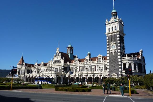 La estación de ferrocarril es la obra cumbre en Dunedin. Inaugurada en 1906 y de estilo renacentista flamenco, fue diseñada por el arquitecto neozelandés George Troup. Sus jardines son cuidados con sumo mimo y dan la bienvenida a todo aquel que baje por la calle que une la plaza Octagon con la estación, concretamente la Lower Stuart Street.