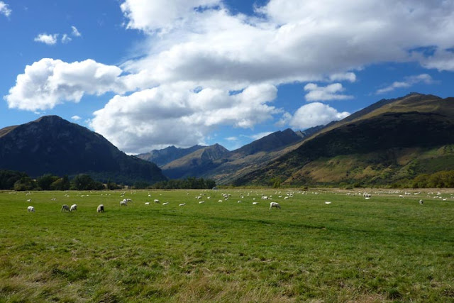 Una opción interesante si lo que hemos ido a hacer es a pasar el día, es girar a la derecha (si venimos de Queenstown) en la rotonda de la calle principal. Es el camino que nos acerca mucho más a las montañas y si nos había sorprendido antes el paisaje lo hará mucho más. Enormes vacas negras, las criadas para obtener carne de ternera (exquisita añadiría), pastan con sus vecinas las ovejas en enormes campos verdes dándoles alimento natural. Resulta curioso cómo conforme nos acercamos a una arboleda vemos un letrero que nos señala el pueblo Paradise (paraiso) al cual se llega dándole la mano al Lago Paradise. Un nombre apropiado para un enclave majestuoso.