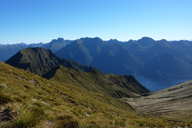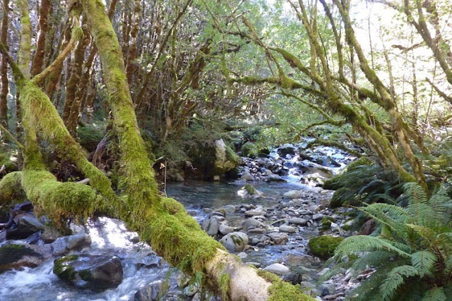 Después de ver amanecer vuelta a la faena robándole intimidad a las milenarias montañas. La mochila a estas alturas pesa algo menos aunque no deja de ser una punzada para los hombros. Las vistas desde el refugio eran increíbles pero en este nuevo día podremos observar las proximidades con mayor detenimiento. Para mi gusto, el trayecto entre Luxmore Hut e Iris Burn Hut es el que realmente hace merecer la pena venir al Kepler track. Es el día en el que se unen las vistas aéreas con el interior de un bosque salvaje por lo que el contraste lo hace más interesante.