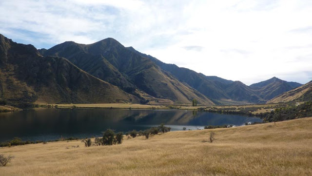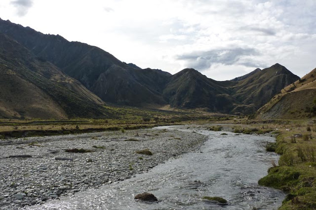 Nada queda para la improvisación. Si tenemos grandes picos y un lago de alguna manera debe llegar el agua hasta allí. A nuestra izquierda siempre tendremos un río con un caudal que va incrementándose según avanzamos y aunque Ben Lomond Station no siempre camina a la misma altura no es difícil imaginar que no tendremos que subir grandes cuestas. He ahí mi afirmación para los ciclistas, gravilla ancha sin grandes pendientes.