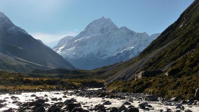 En el blog faltaba una muesca en lo referente a la isla sur, puede además que la más importante de todas ellas. Hoy os hablaré de Mount Cook National Park que debe su nombre a la cumbre más alta de toda Nueva Zelanda con sus 3.755 metros de altitud. Aoraki en maorí, fue nombrado parque nacional en 1953 conteniendo 19 cumbres de más de 3.000 metros cubiertos por glaciares en un 40%. Ellos forman el grueso de los Alpes meridionales de la isla sur.