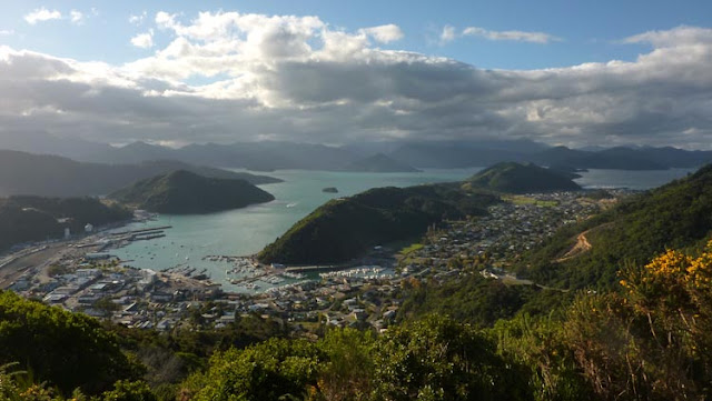 Debido a que hasta el momento no he pisado la isla norte no os puedo hablar de Wellington ni ofreceros ninguna imagen suya. Por ahora os tenéis que conformar con ver a Picton. No es una ciudad muy grande ni tampoco bella en sí hasta el momento que llegamos al puerto o sobre todo cuando la miramos desde las alturas. ¿Os acordáis cuando hablé de la perspectiva en el artículo de Kaikoura? Tocará aprender de nuevo la tabla de multiplicar para describirlo esta vez…