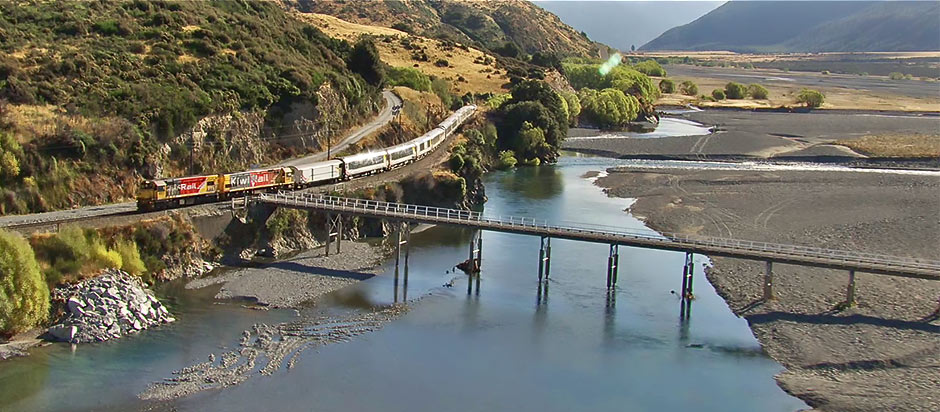 El TranzScenic recorre el trayecto desde la ciudad de Greymouth (costa del océano Pacífico) hasta Christchurch (costa del mar de Tasmania) y ofrece algunas de las vistas más hermosas de la isla Sur de Nueva Zelanda. Este viaje en tren penetra en la montaña para conectar las dos costas a través de túneles y viaductos, ofreciendo espectaculares vistas de profundos cañones, ríos, glaciares o espléndidos bosques. Cada paisaje refleja una tonalidad única, haciendo del trayecto un bello paisaje en sí mismo.