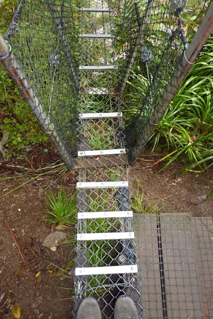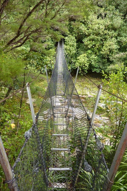 Podríamos decir que Wainui falls es apto para todos los públicos salvo para los que sufran vértigos. Sobre la mitad deberemos cruzar un puente con espacio para una única persona sostenido por 6 (in)estables cables para movernos al otro lado del río. No es que haya una gran altura pero se aprecia el balanceo de la pasarela a nuestro paso. Si se quiere ir con niños pequeños es el único punto peligroso aunque estoy seguro que no es peligroso si lo tomamos con cautela.